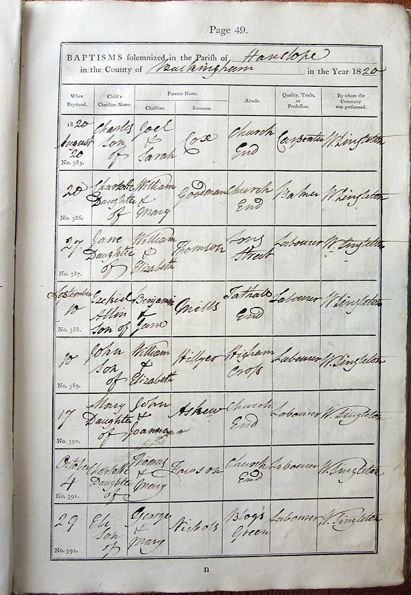 Below is a transcription and image of page 49 of the Baptism register for 1813-1845 of St. James The Great, Hanslope |