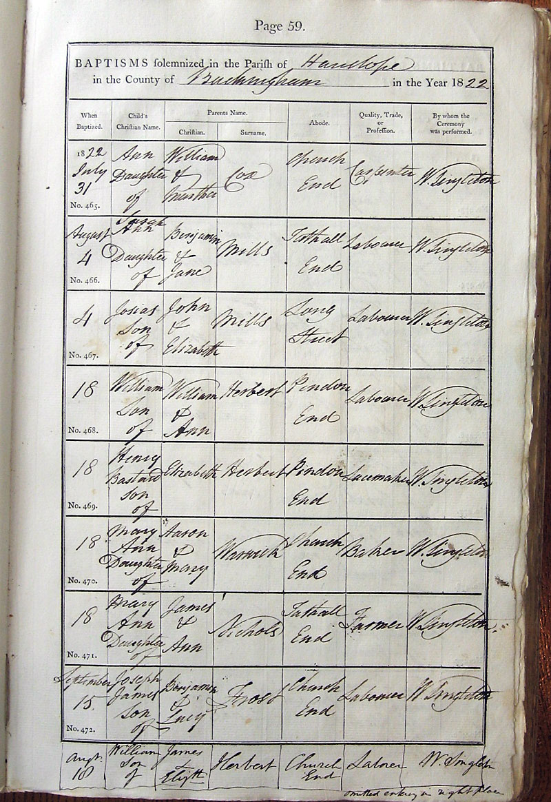 Below is a transcription and image of page 59 of the Baptism register for 1813-1845 of St. James The Great, Hanslope |