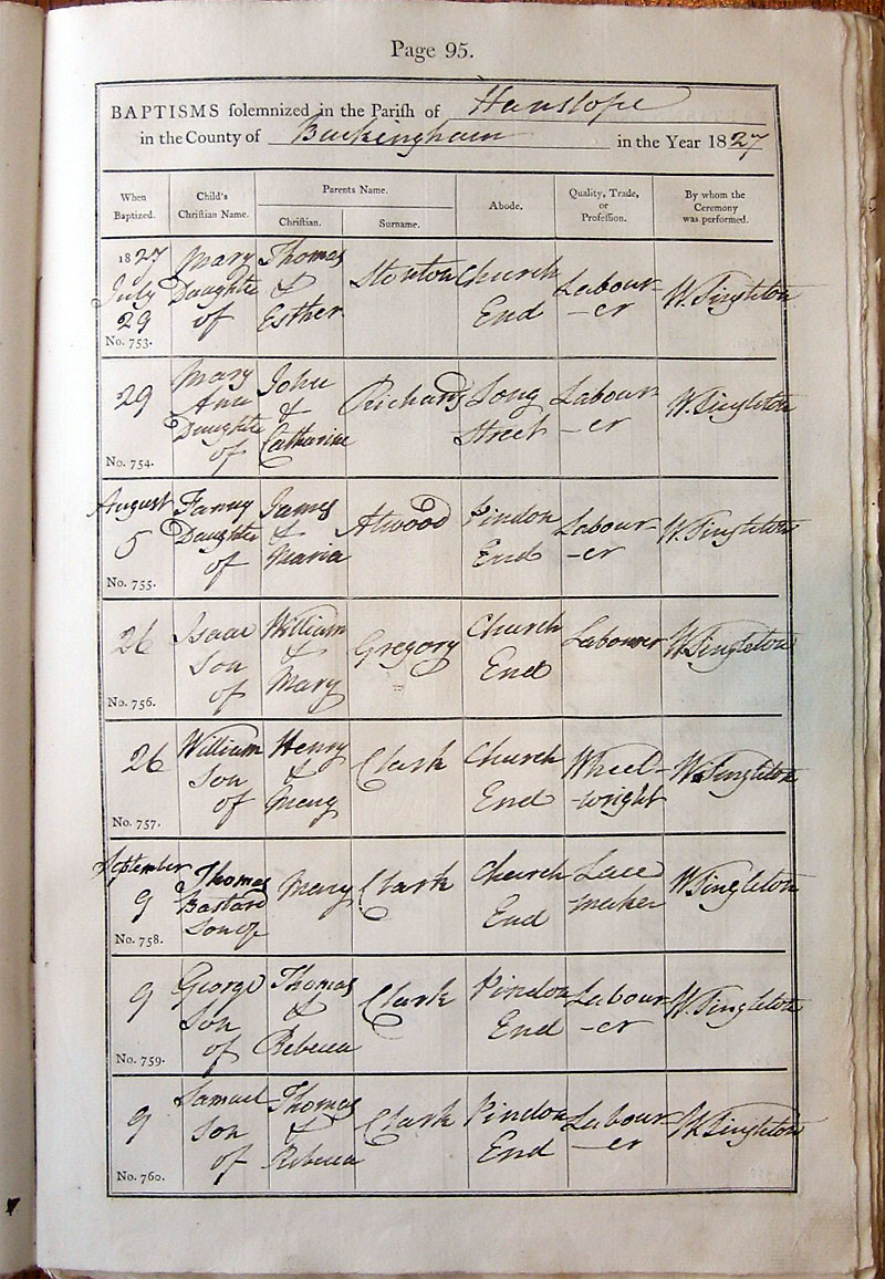 Below is a transcription and image of page 95 of the Baptism register for 1813-1845 of St. James The Great, Hanslope |