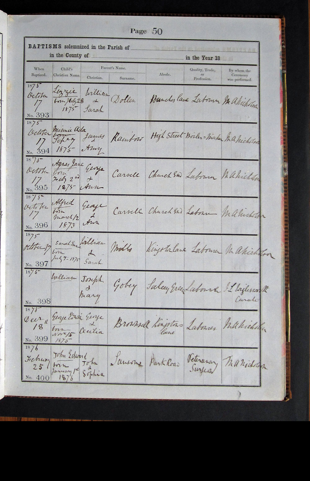 Back | Home Page | Family History Intro | Other Church Records | New Search |