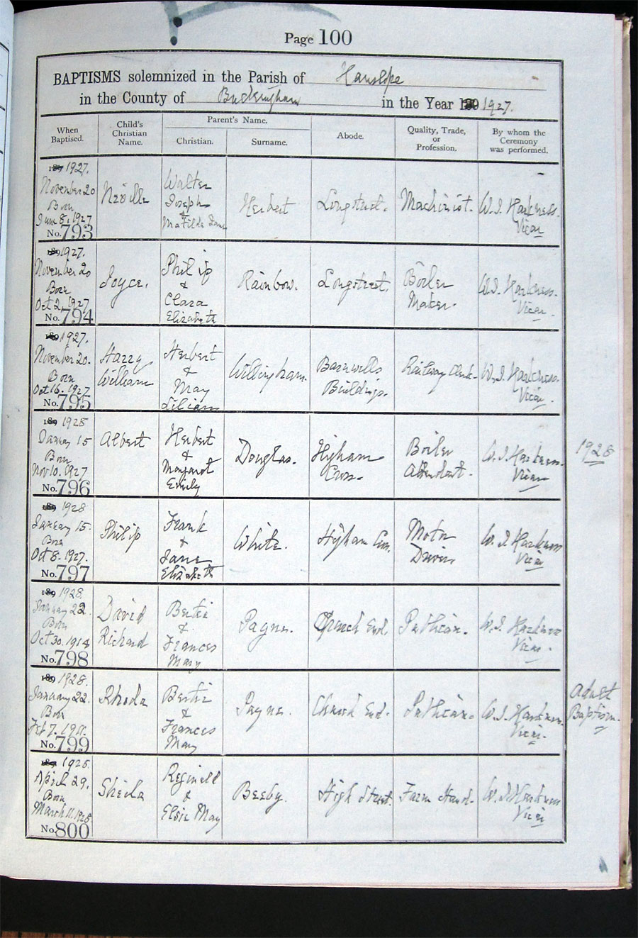 Below is a transcription and image of page 100 of the Baptism register for 1893-1928 of St. James The Great, Hanslope |