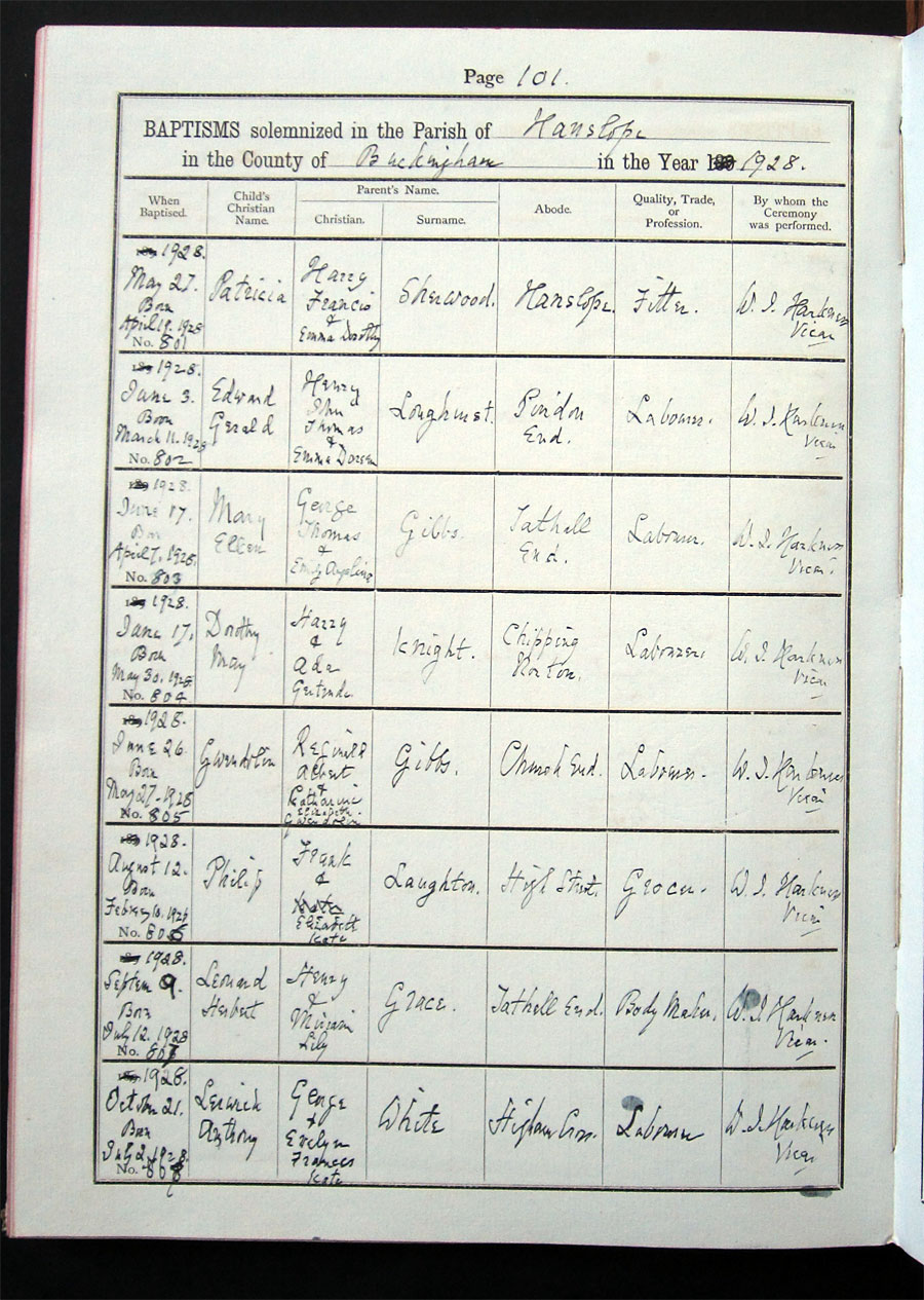 Below is a transcription and image of page 101 of the Baptism register for 1893-1928 of St. James The Great, Hanslope |