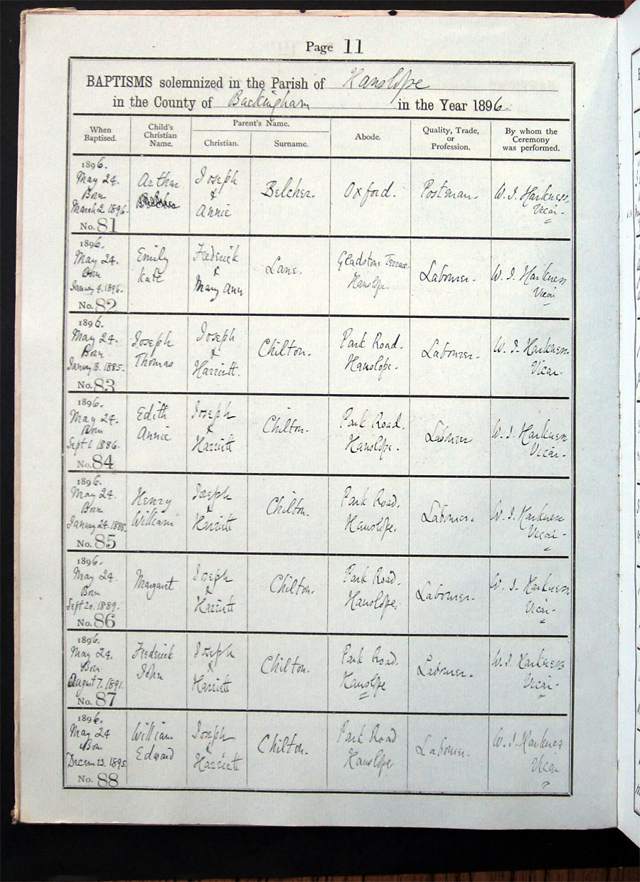 Below is a transcription and image of page 11 of the Baptism register for 1893-1928 of St. James The Great, Hanslope