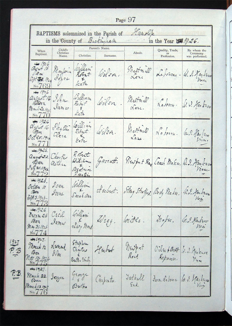 Below is a transcription and image of page 97 of the Baptism register for 1893-1928 of St. James The Great, Hanslope |