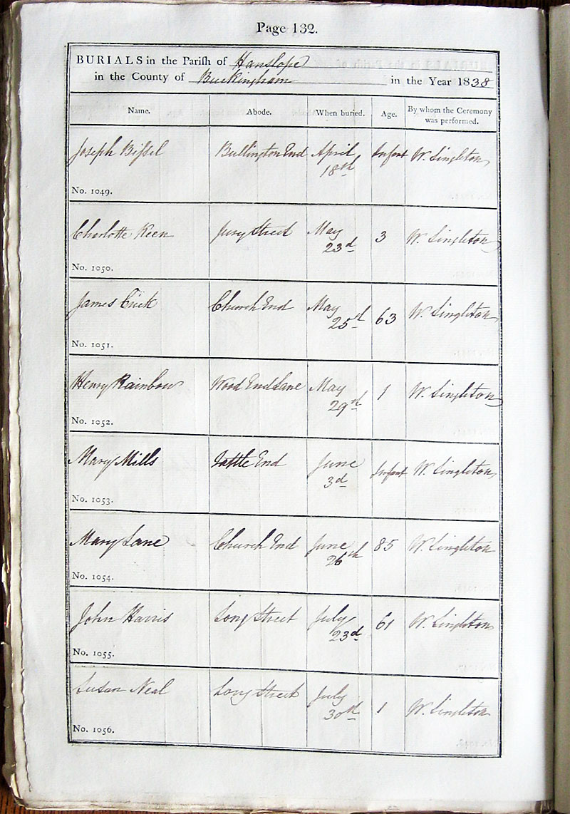 Below is a transcription and image of page 132 of the Burial register for 1813-1852 of St. James The Great, Hanslope |