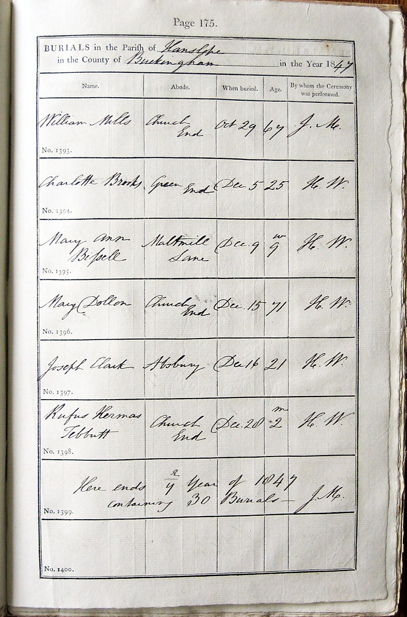 Below is a transcription and image of page 175 of the Burial register for 1813-1852 of St. James The Great, Hanslope |