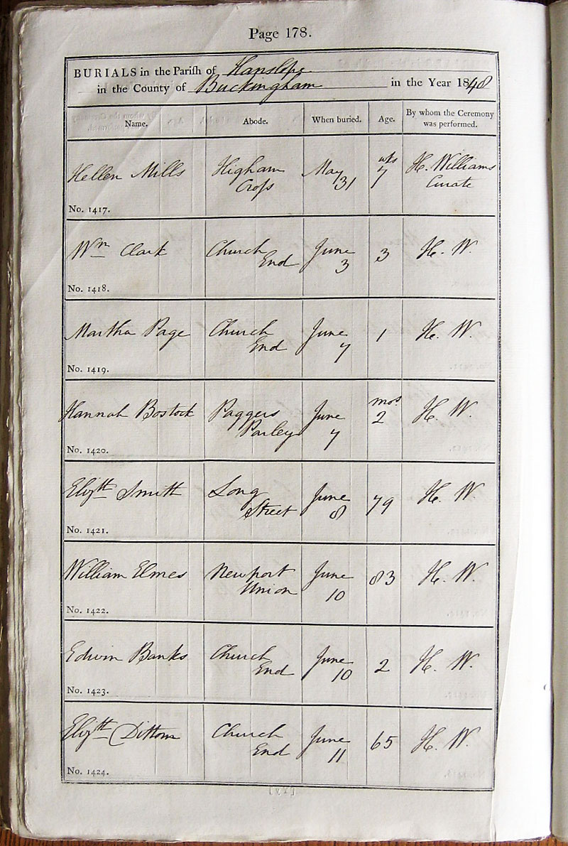 Below is a transcription and image of page 178 of the Burial register for 1813-1852 of St. James The Great, Hanslope