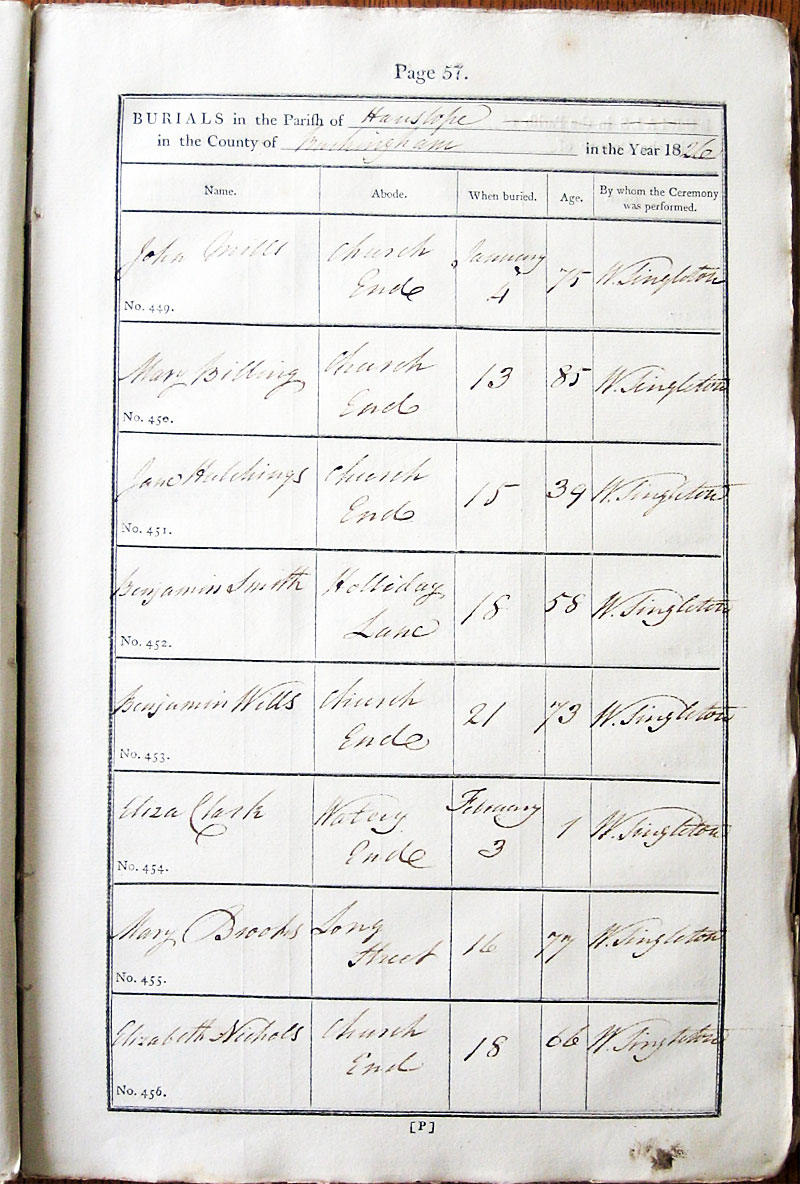 Below is a transcription and image of page 57 of the Burial register for 1813-1852 of St. James The Great, Hanslope |