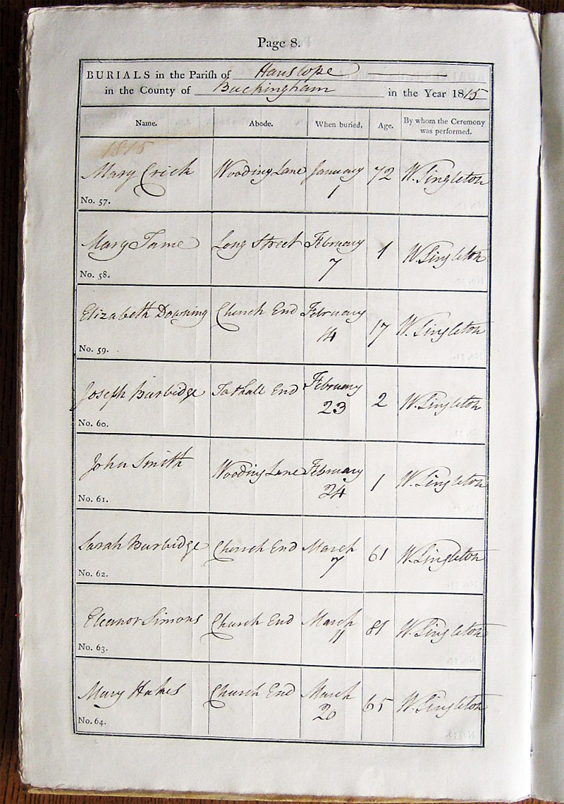 Below is a transcription and image of page 8 of the Burial register for 1813-1852 of St. James The Great, Hanslope |