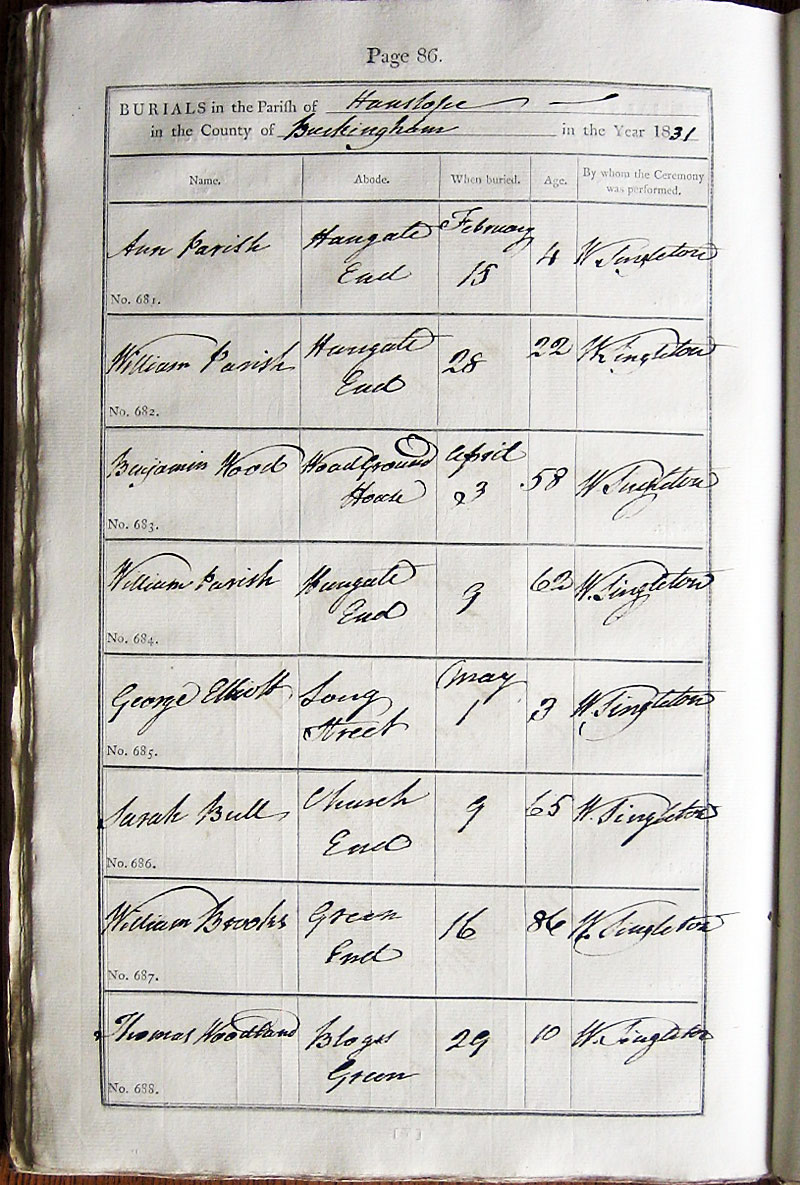 Below is a transcription and image of page 86 of the Burial register for 1813-1852 of St. James The Great, Hanslope |