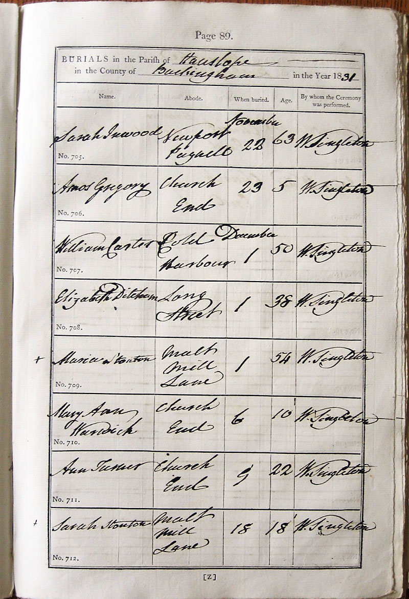 B U R I A L S in the Parish of .. Hanslope .. in the
