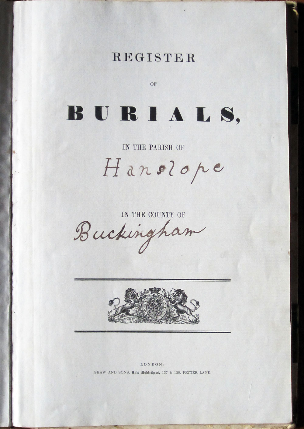Below is a transcription and image of page -1 of the Burial register for 1853-1878 of St. James The Great, Hanslope |