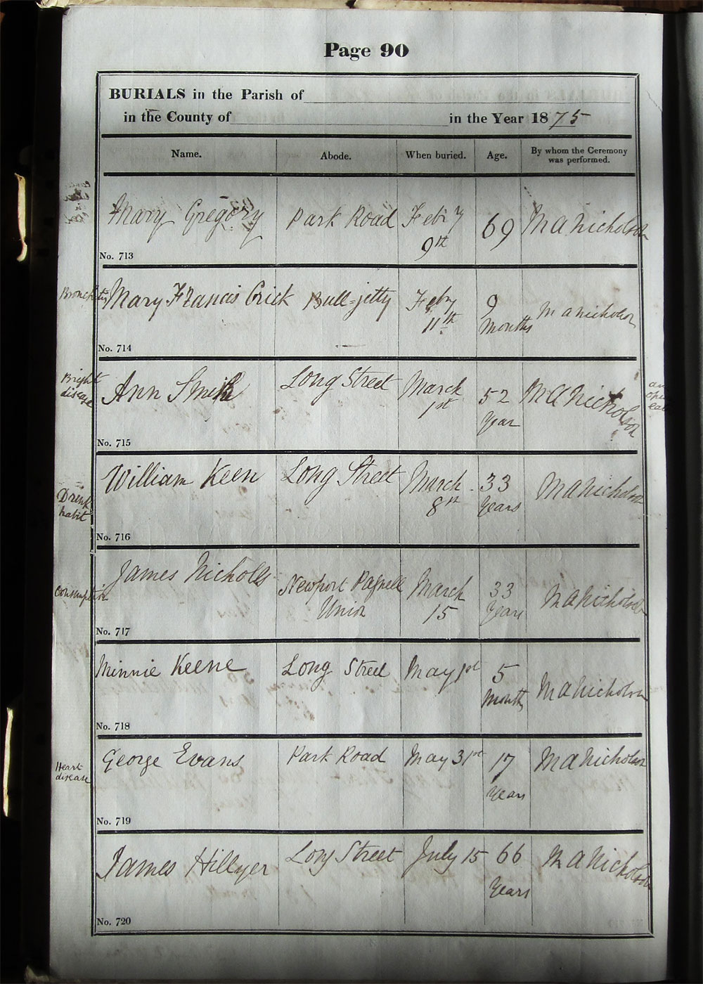 Below is a transcription and image of page 90 of the Burial register for 1853-1878 of St. James The Great, Hanslope