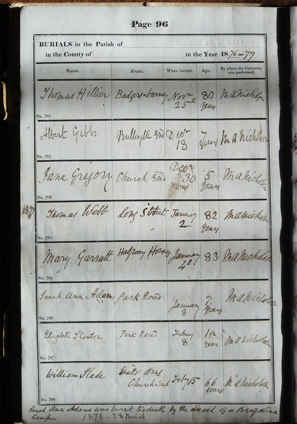 Below is a transcription and image of page 96 of the Burial register for 1853-1878 of St. James The Great, Hanslope |