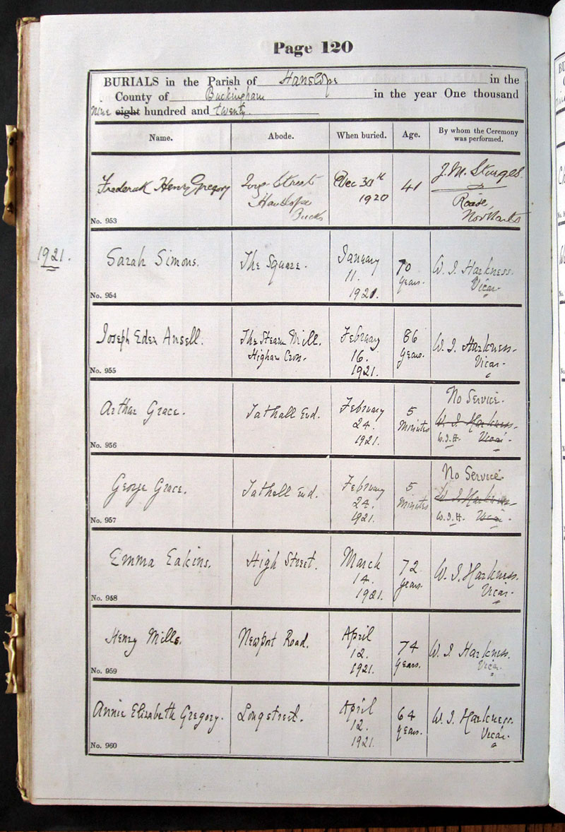 Below is a transcription and image of page 120 of the Burial register for 1878-1963 of St. James The Great, Hanslope |