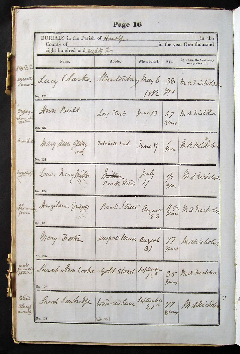 Below is a transcription and image of page 16 of the Burial register for 1878-1963 of St. James The Great, Hanslope