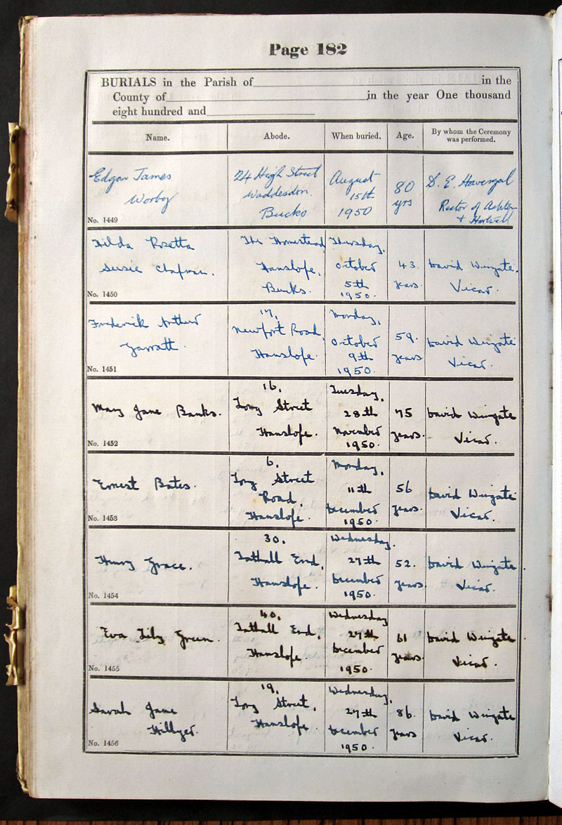 B U R I A L S in the Parish of .. Hanslope ..