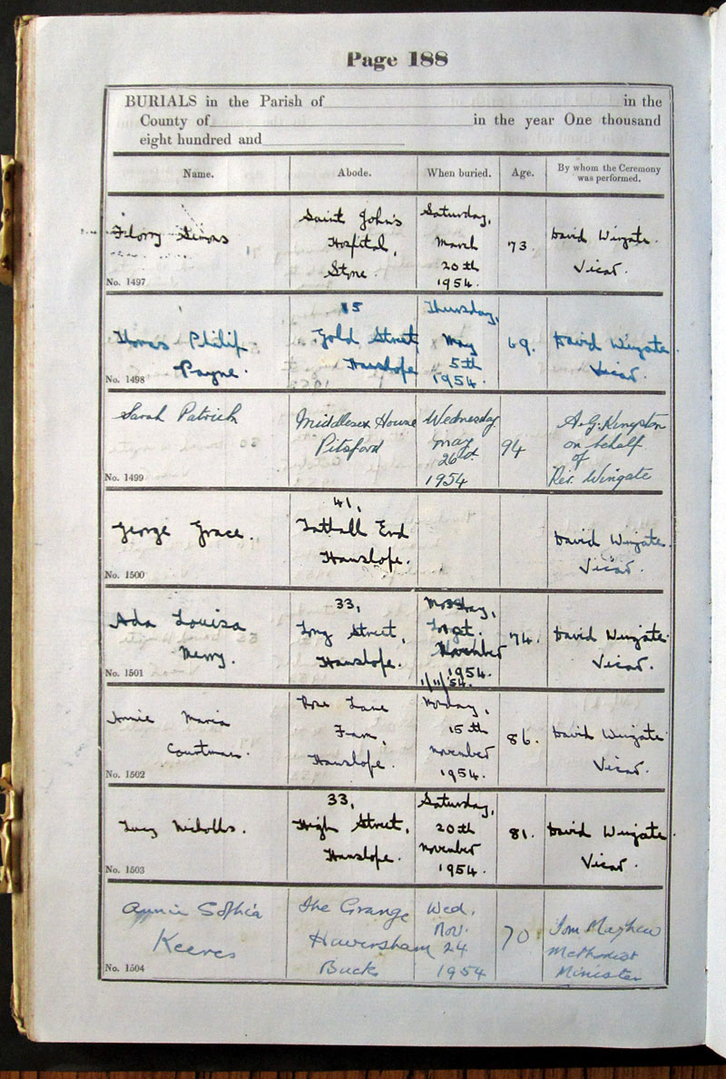 Below is a transcription and image of page 188 of the Burial register for 1878-1963 of St. James The Great, Hanslope