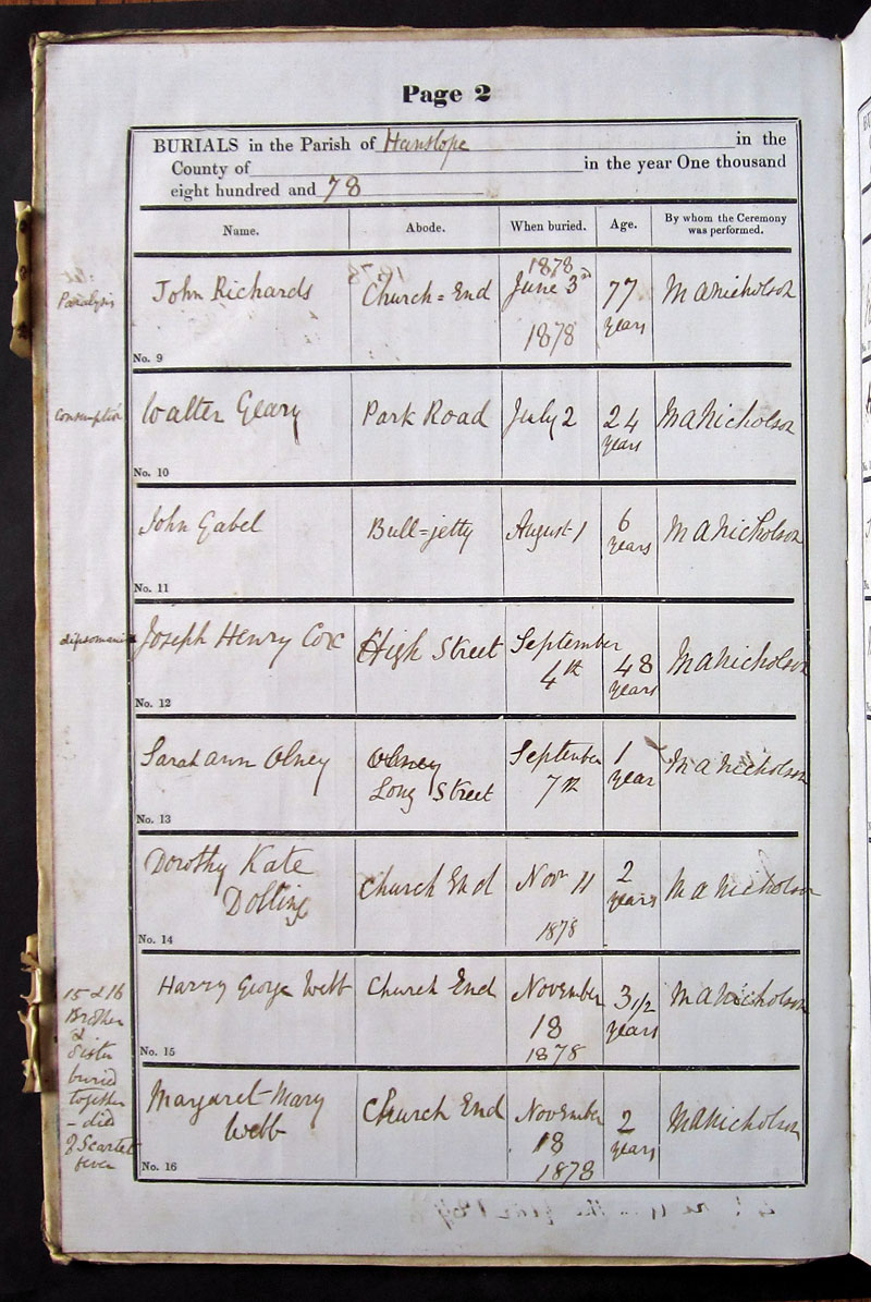 Below is a transcription and image of page 2 of the Burial register for 1878-1963 of St. James The Great, Hanslope |
