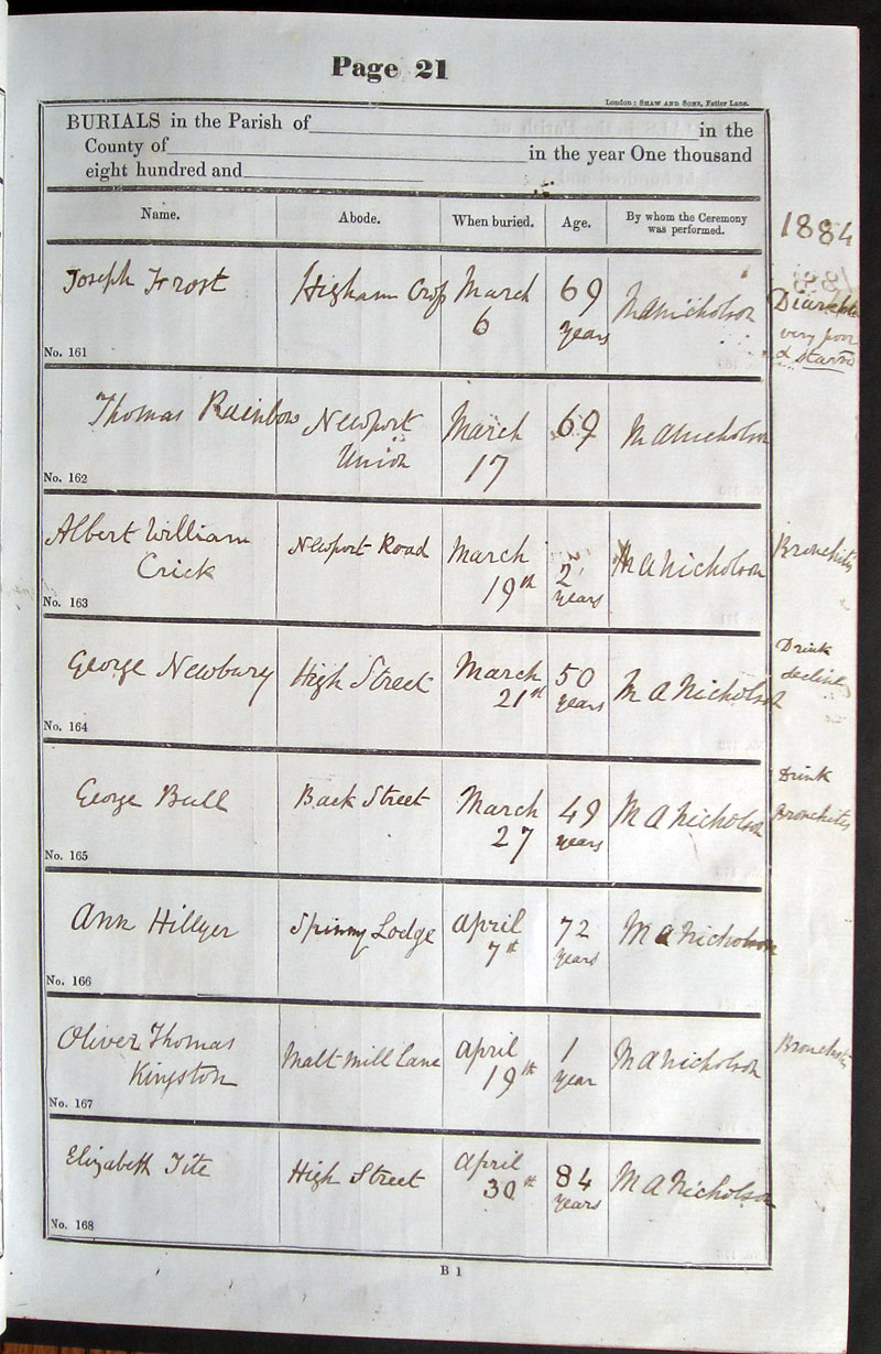 Comments in register: Bronchitis