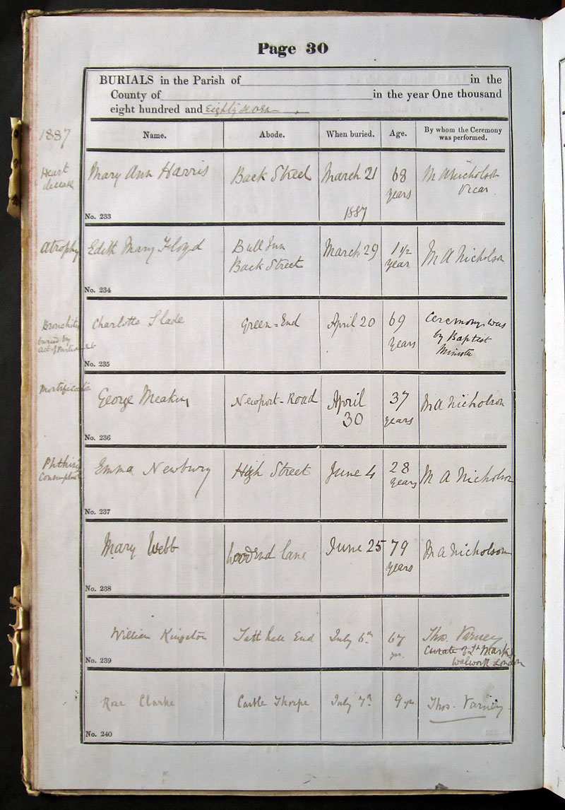 Name Abode When buried Age By whom the Ceremony