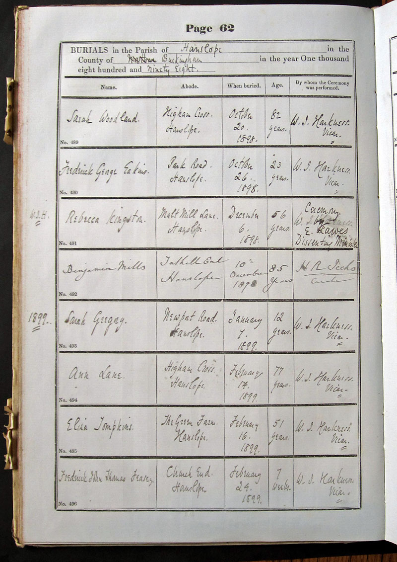 B U R I A L S in the Parish of .. Hanslope .. in the