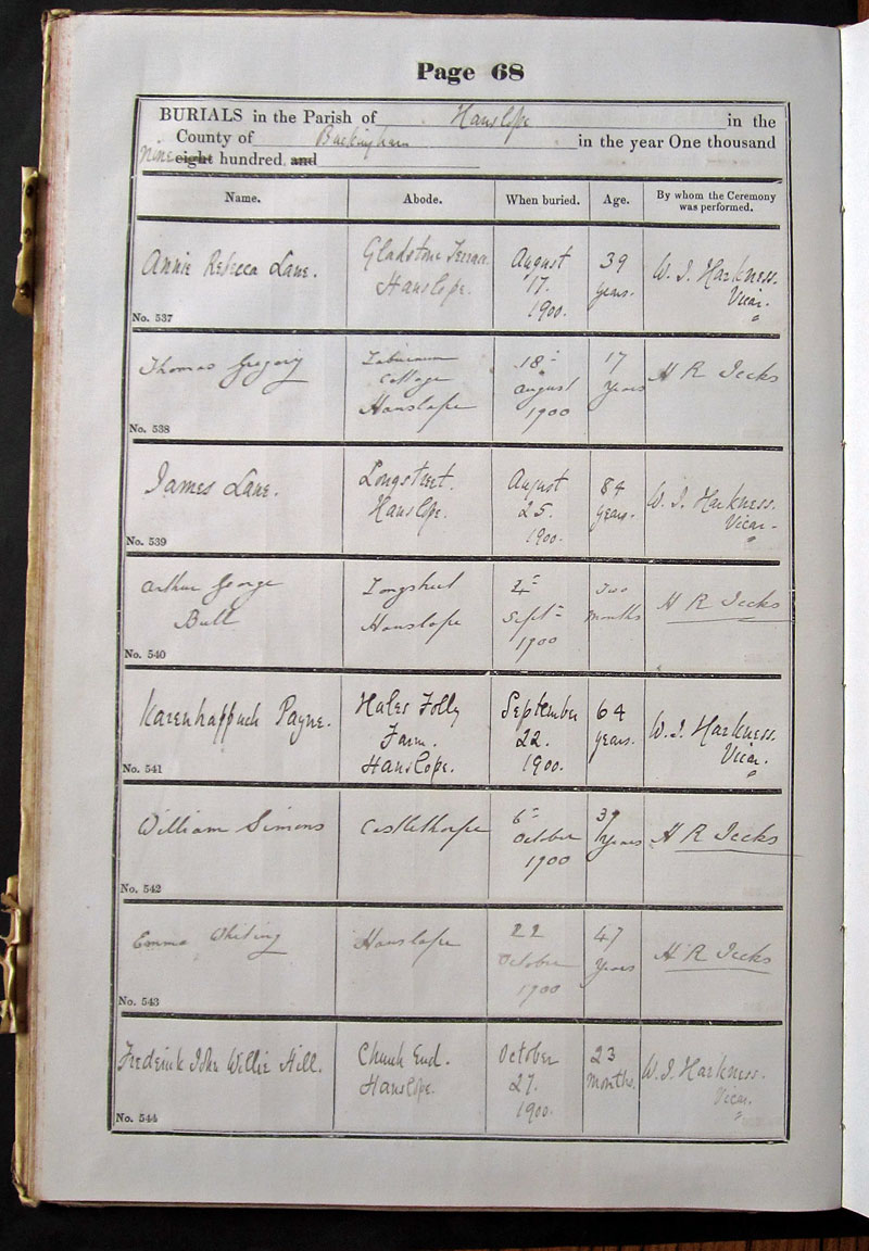 Below is a transcription and image of page 68 of the Burial register for 1878-1963 of St. James The Great, Hanslope |