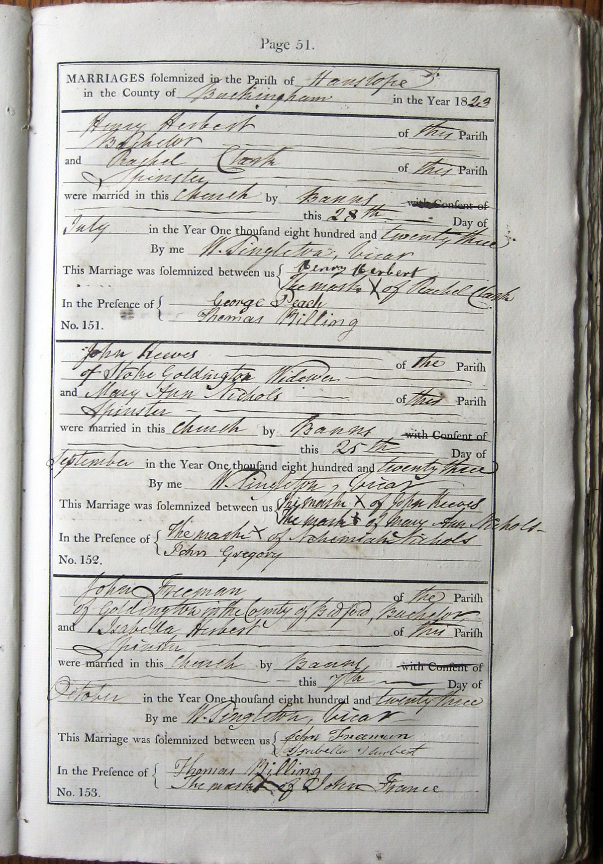 M A R R I A G E S solemnized in the Parish of ... Hanslope ...