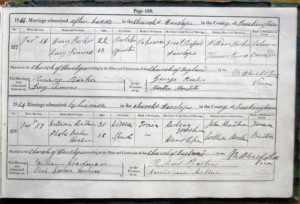 by Banns in the Church of Hanslope in the