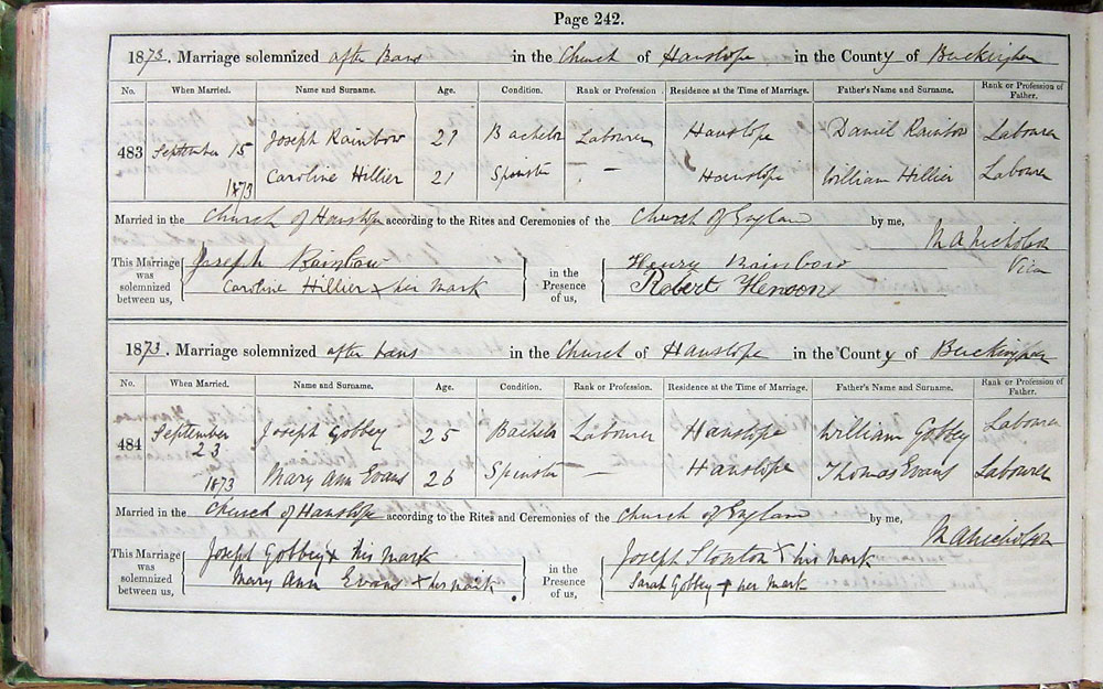 by Banns in the Church of Hanslope in the