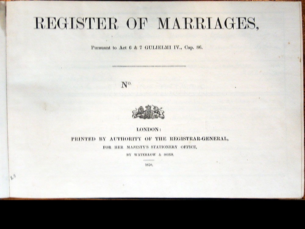 Below is a transcription and image of cover pages of the Marriage register for 1874-1899 of St. James The Great, Hanslope