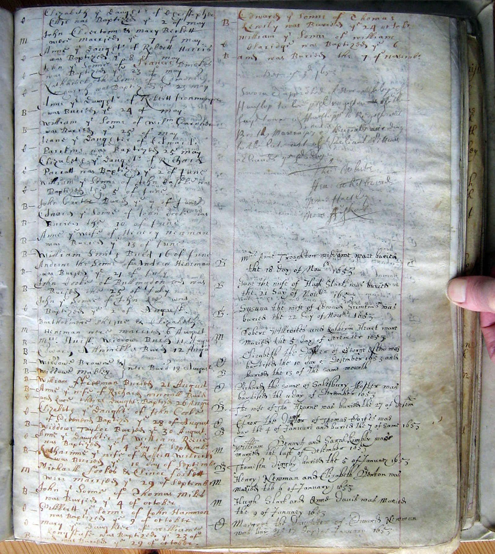 The years above are according to the old style calendar in which the year began on 25 March, Lady Day.  The entries above for the period January - March 1653 are for 1654 according to the modern calendar.