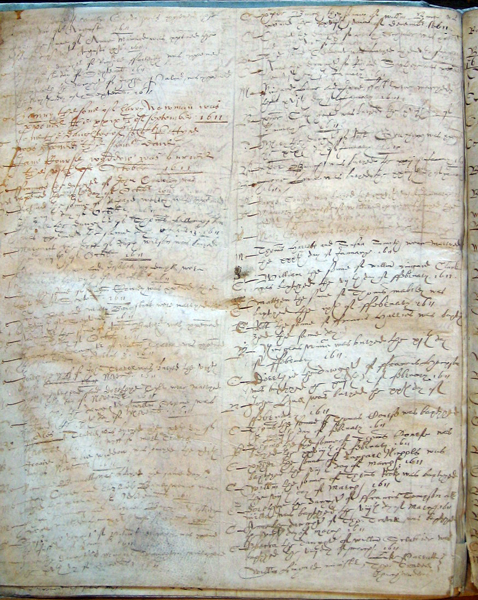 The years above are according to the old style calendar in which the year began on 25 March, Lady Day.  The entries above for the period January - March 1611 are for 1612 according to the modern calendar.