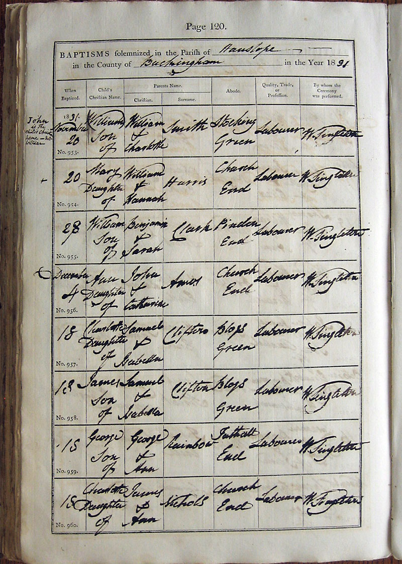 Below is a transcription and image of page 120 of the Baptism register for 1813-1845 of St. James The Great, Hanslope |