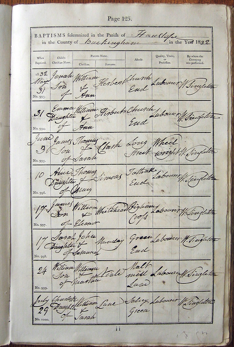 Below is a transcription and image of page 125 of the Baptism register for 1813-1845 of St. James The Great, Hanslope |