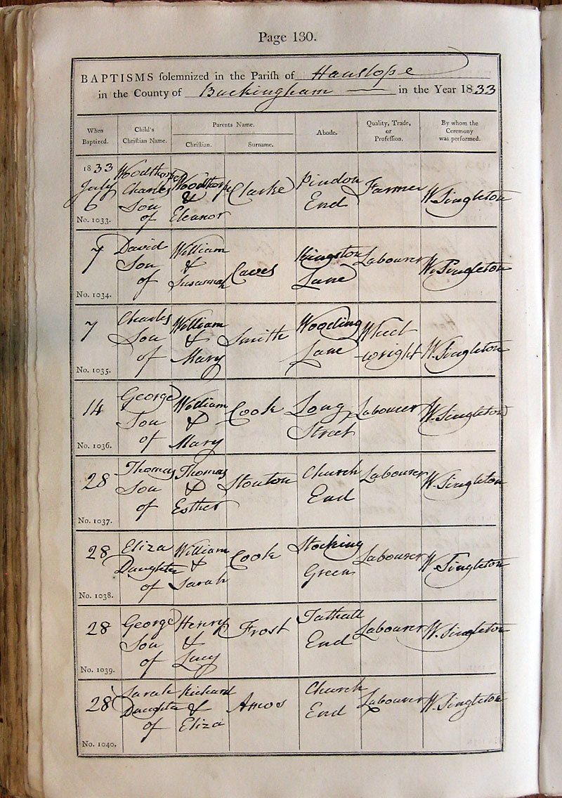 Below is a transcription and image of page 130 of the Baptism register for 1813-1845 of St. James The Great, Hanslope |