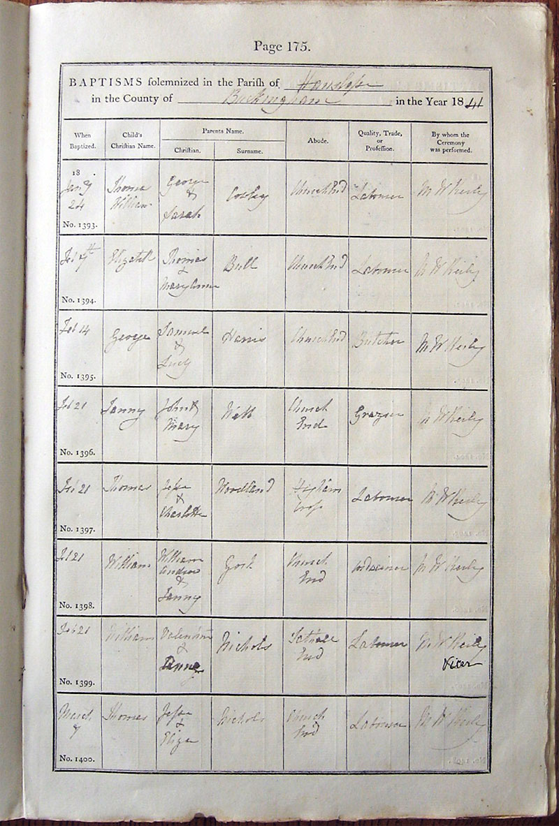 Below is a transcription and image of page 175 of the Baptism register for 1813-1845 of St. James The Great, Hanslope |