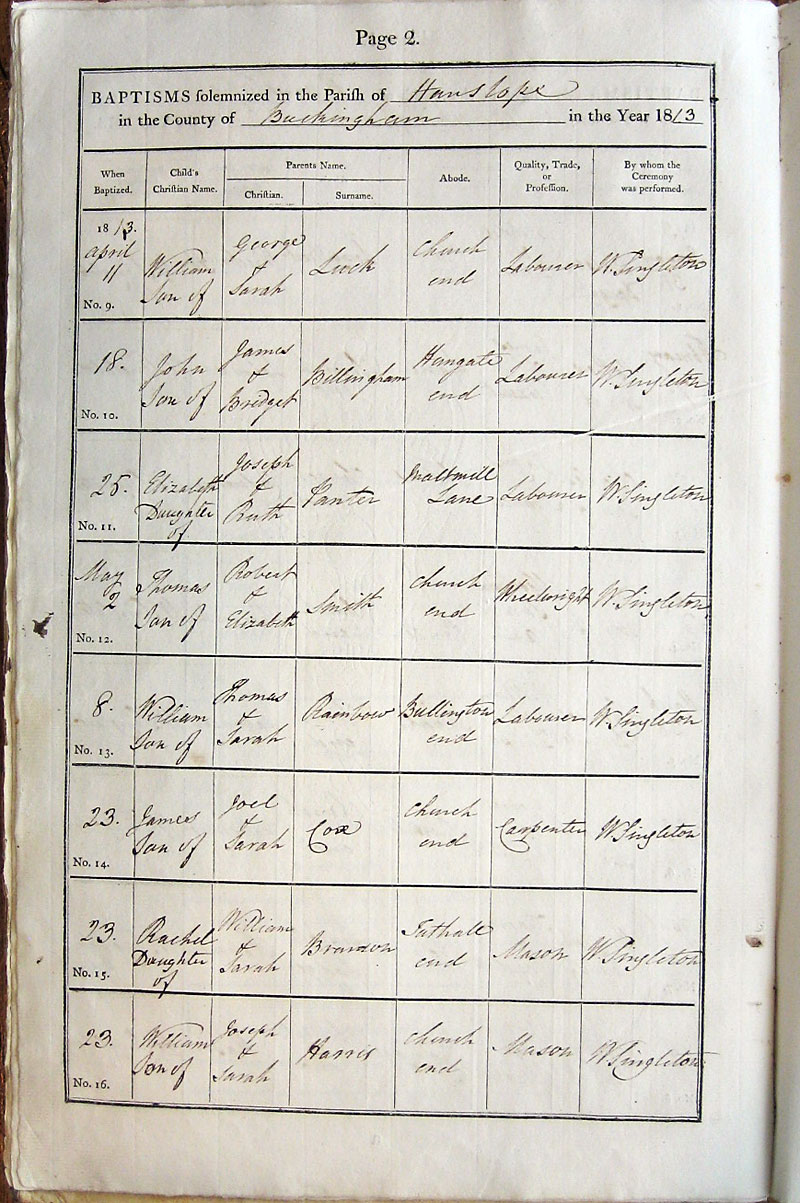 Below is a transcription and image of page 2 of the Baptism register for 1813-1845 of St. James The Great, Hanslope |