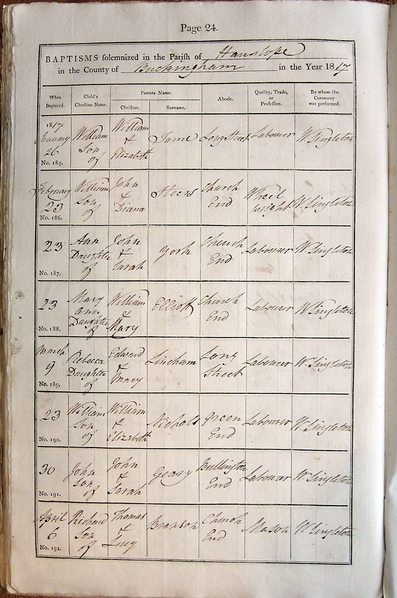 Below is a transcription and image of page 24 of the Baptism register for 1813-1845 of St. James The Great, Hanslope |