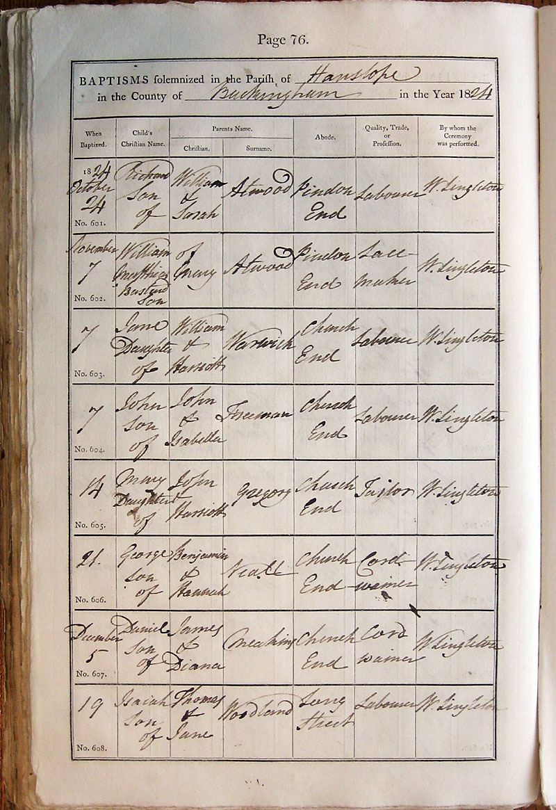 Below is a transcription and image of page 76 of the Baptism register for 1813-1845 of St. James The Great, Hanslope |