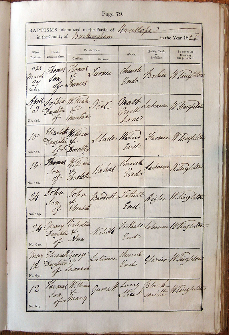 Below is a transcription and image of page 79 of the Baptism register for 1813-1845 of St. James The Great, Hanslope