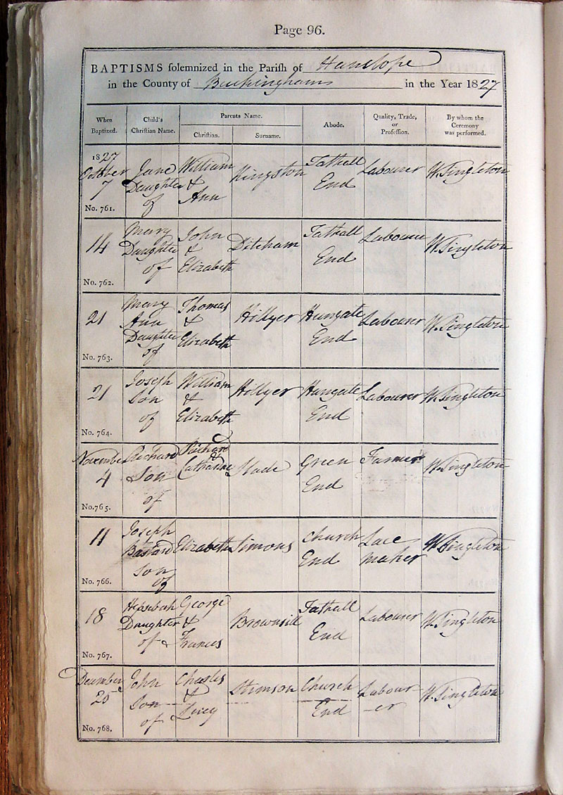 Below is a transcription and image of page 96 of the Baptism register for 1813-1845 of St. James The Great, Hanslope |