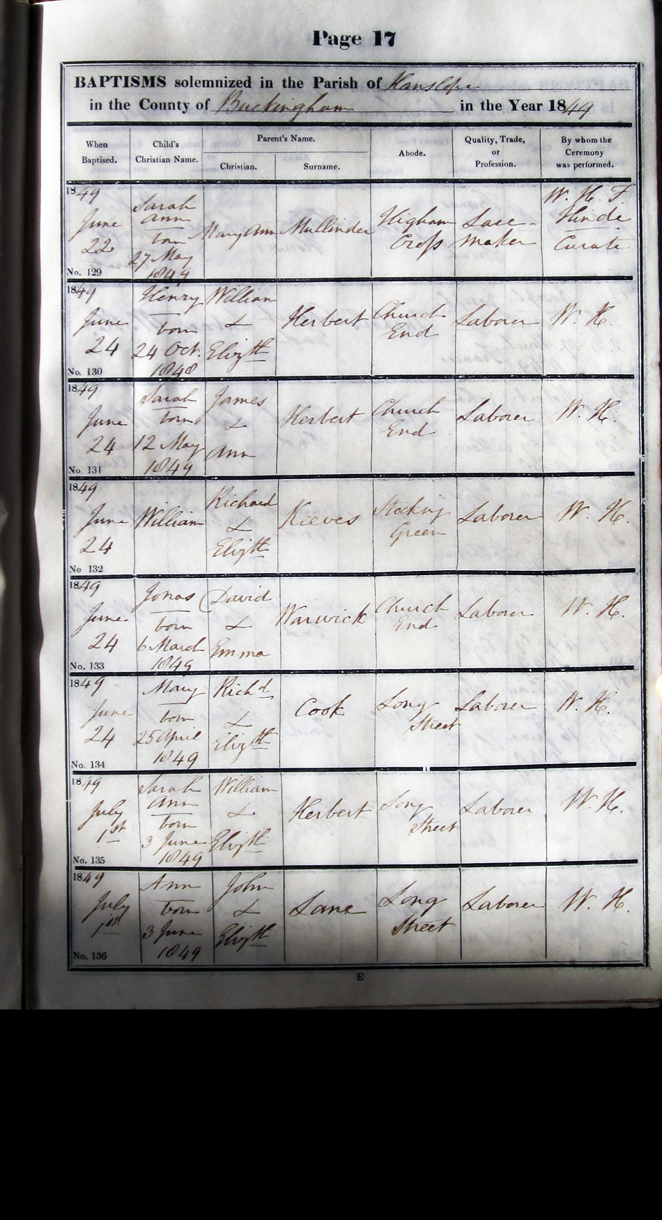 Below is a transcription and image of page 17 of the Baptism register for 1846-1863 of St. James The Great, Hanslope |