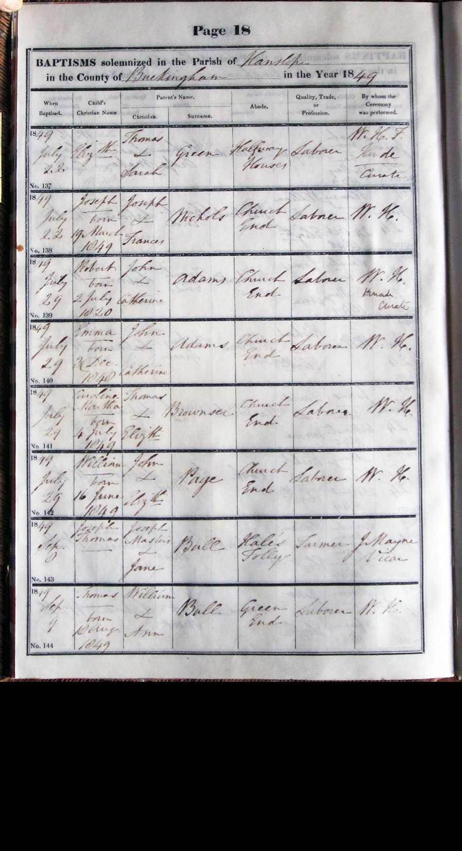 Below is a transcription and image of page 18 of the Baptism register for 1846-1863 of St. James The Great, Hanslope |