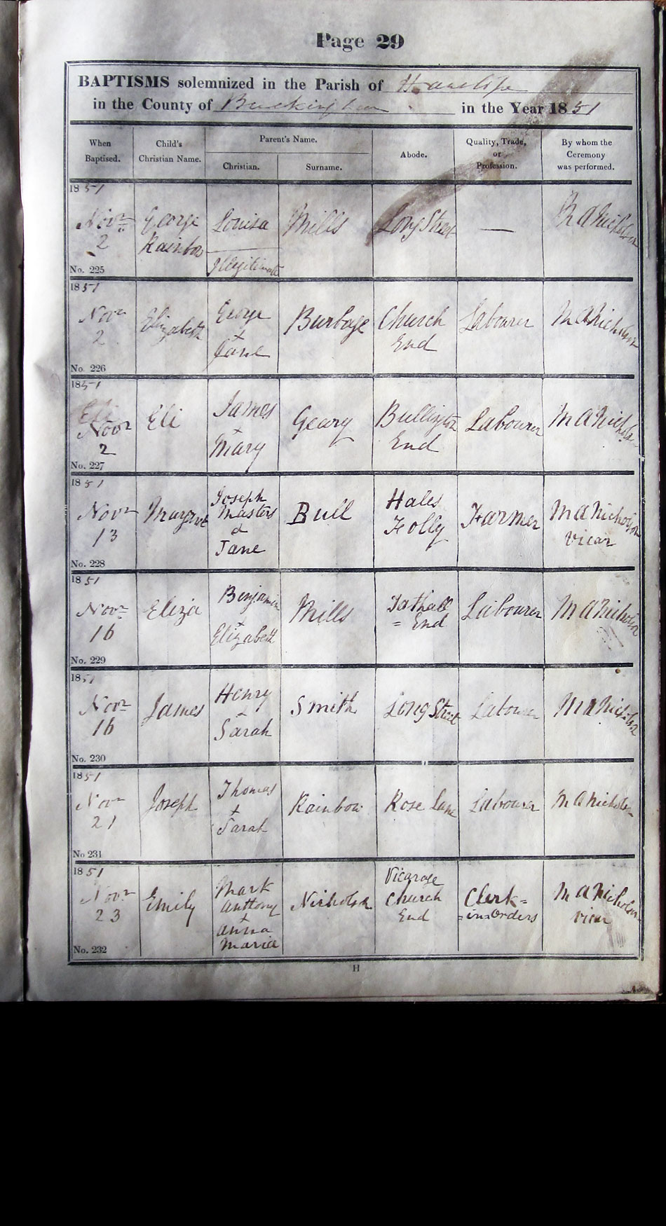 Below is a transcription and image of page 29 of the Baptism register for 1846-1863 of St. James The Great, Hanslope |