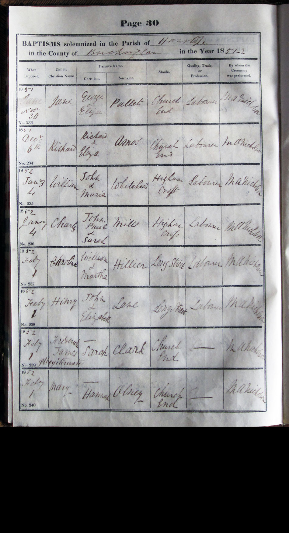Below is a transcription and image of page 30 of the Baptism register for 1846-1863 of St. James The Great, Hanslope |