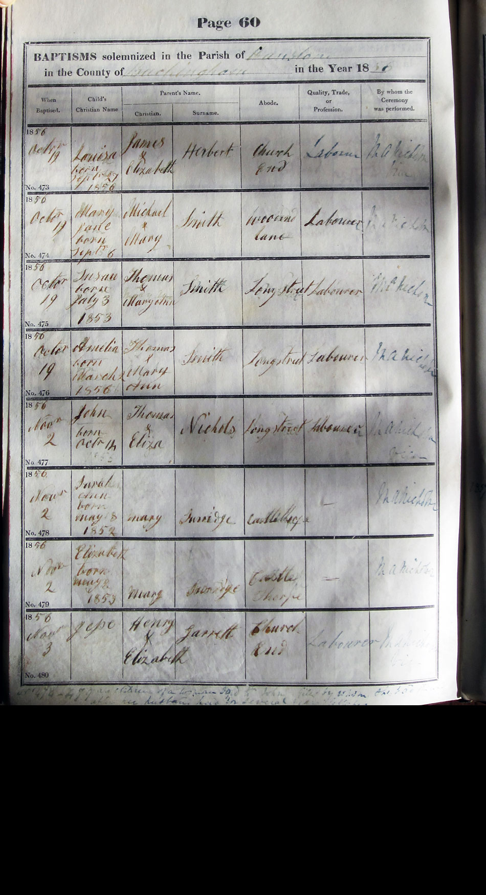 Below is a transcription and image of page 60 of the Baptism register for 1846-1863 of St. James The Great, Hanslope |