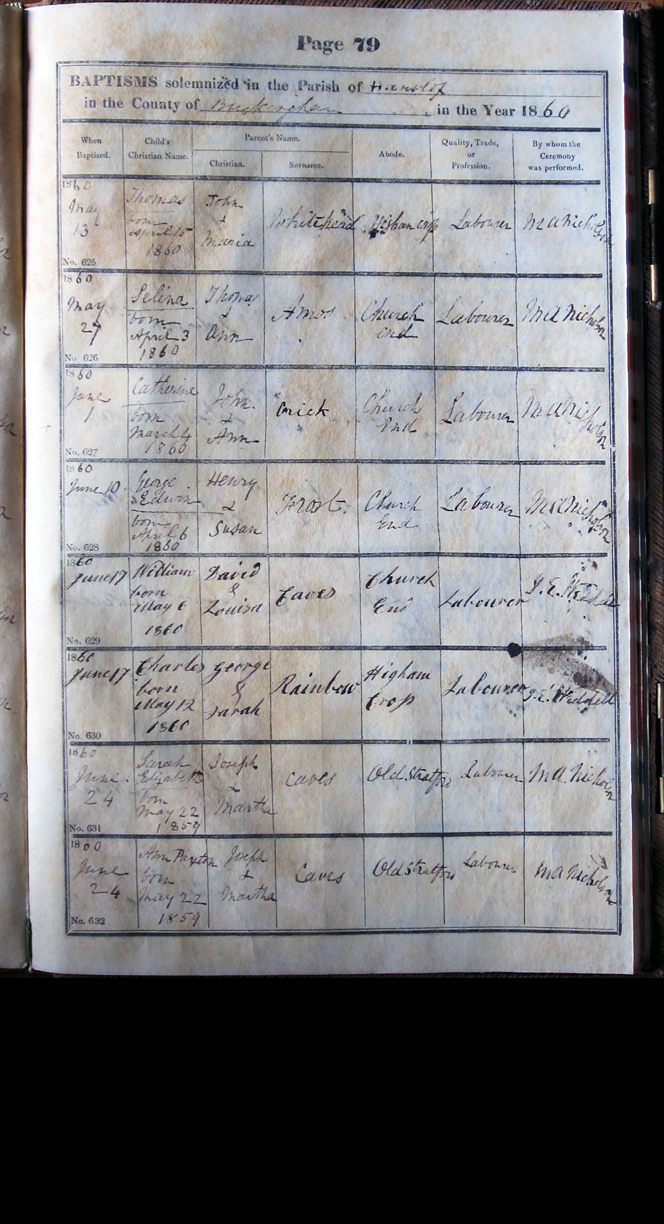 Below is a transcription and image of page 79 of the Baptism register for 1846-1863 of St. James The Great, Hanslope |