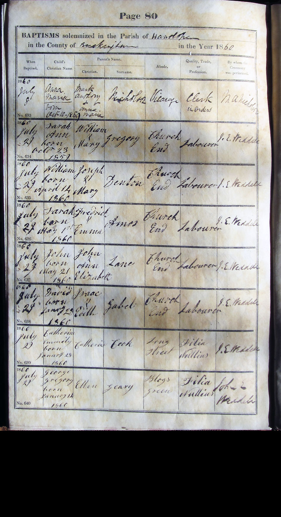 Below is a transcription and image of page 80 of the Baptism register for 1846-1863 of St. James The Great, Hanslope |