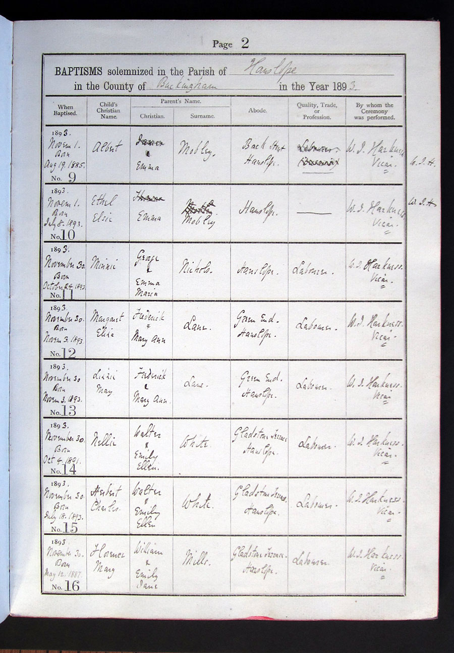 Below is a transcription and image of page 2 of the Baptism register for 1893-1928 of St. James The Great, Hanslope